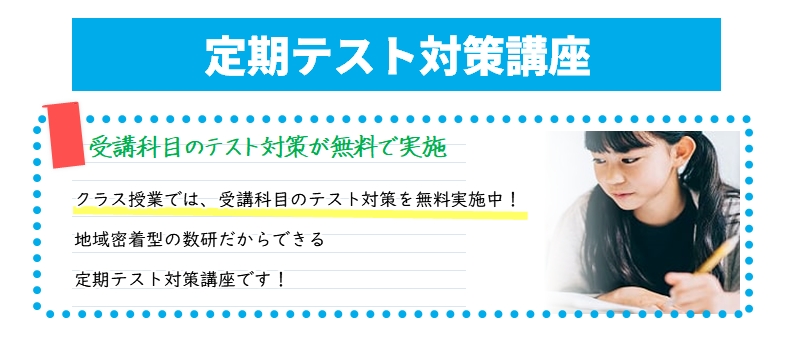 各中学校の過去の定期テストから傾向を調べ、テスト対策授業を構成しています。