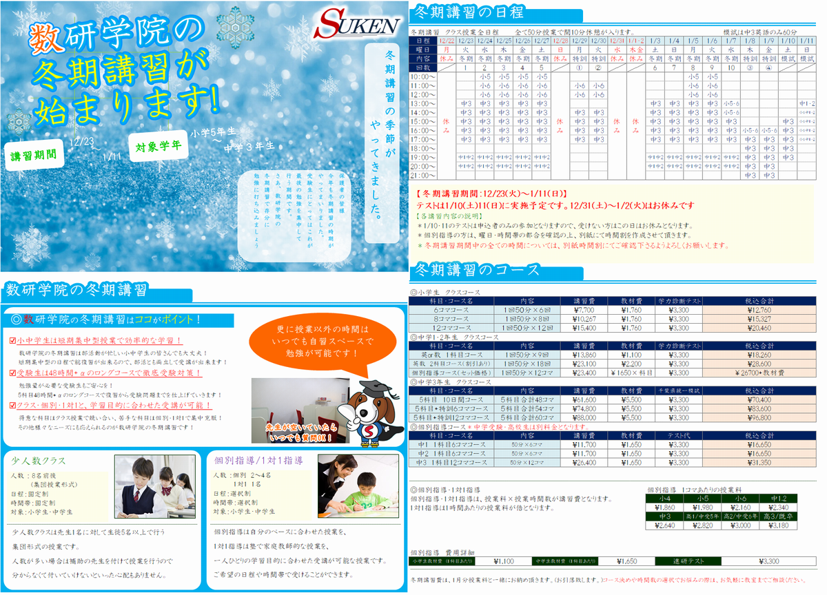 ☆個別授業も上記と同じく2科目まで体験が受けられます。こちらは空いている日時をご相談の上のご連絡願います。