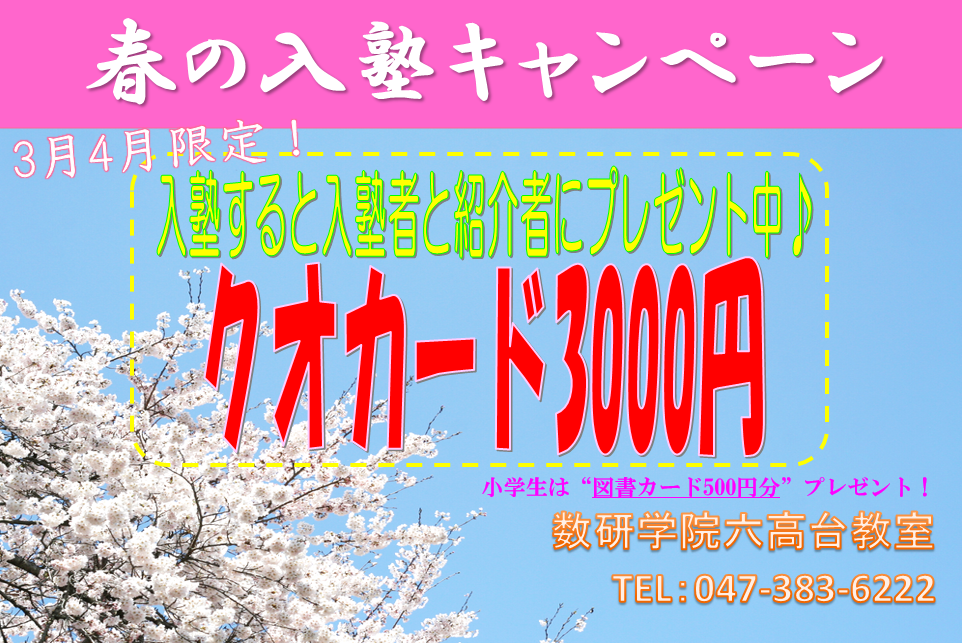 ⇒数研学院六高台教室 TEL:047-383-6222